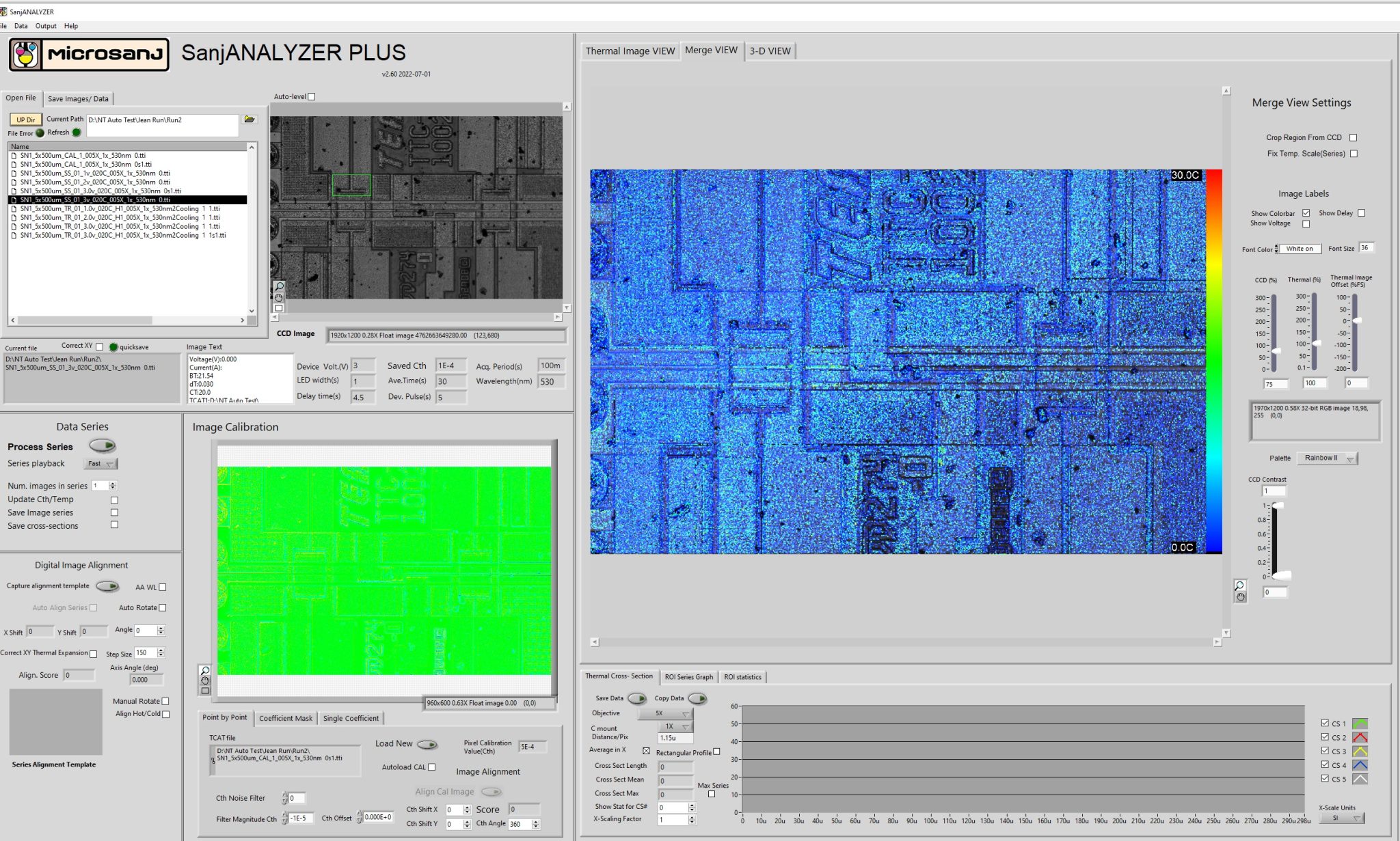 SanjANALYZER-PLUS™ is a standalone software option for the Microsanj NanoTherm series thermoreflectance thermal analyzers. This user-friendly SW upgrade enables the post-processing of data files generated by the embedded SanjVIEW™ software¹. SanjANALYZER-PLUS enables several new features leading to enhanced data resolution and accuracy with support for more flexible report generation and easier file transfers.